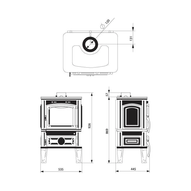 - Дверца открывается на 180°, не мешая при закладке дров.